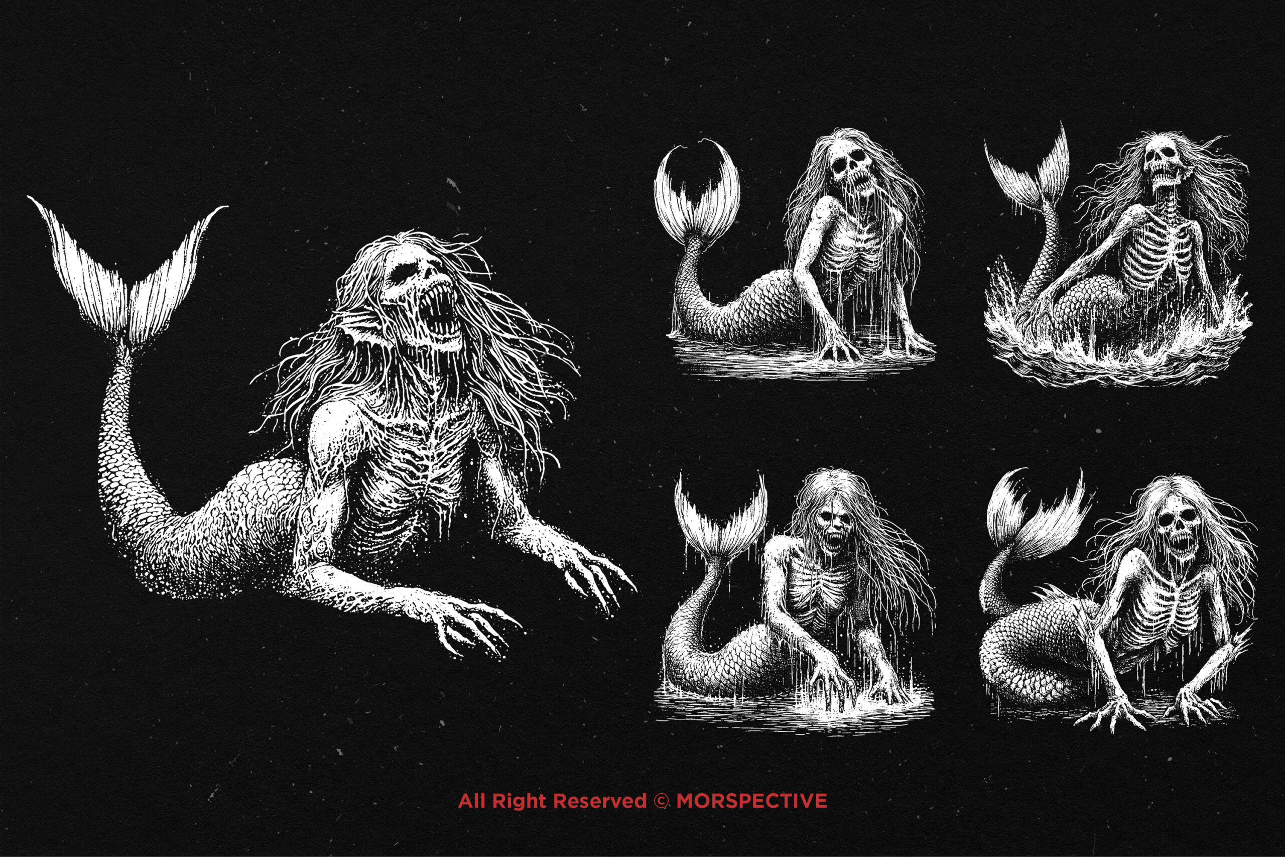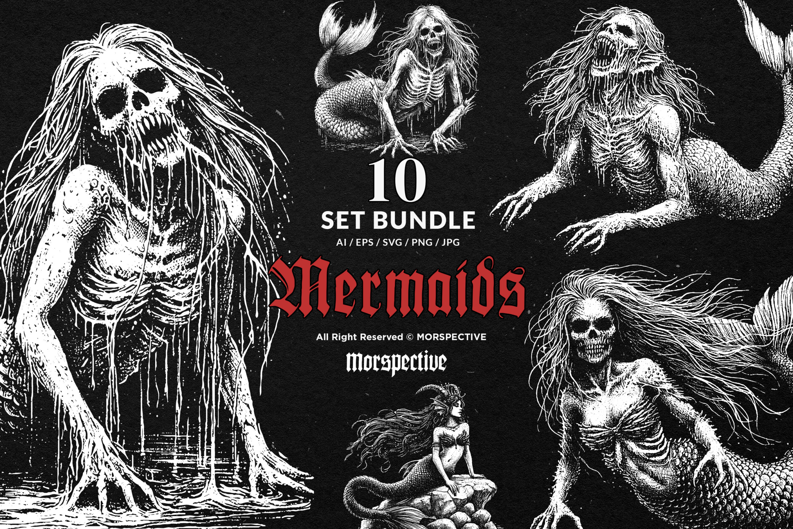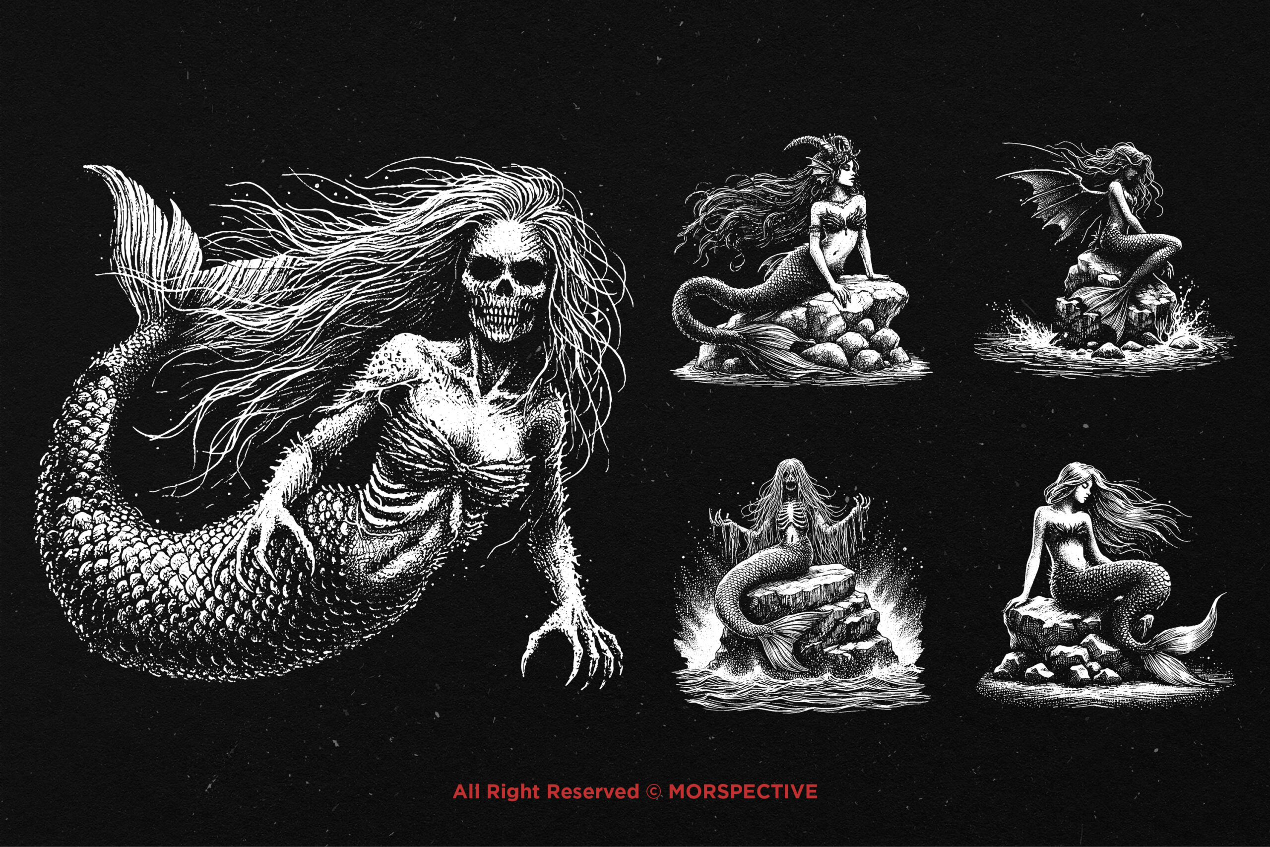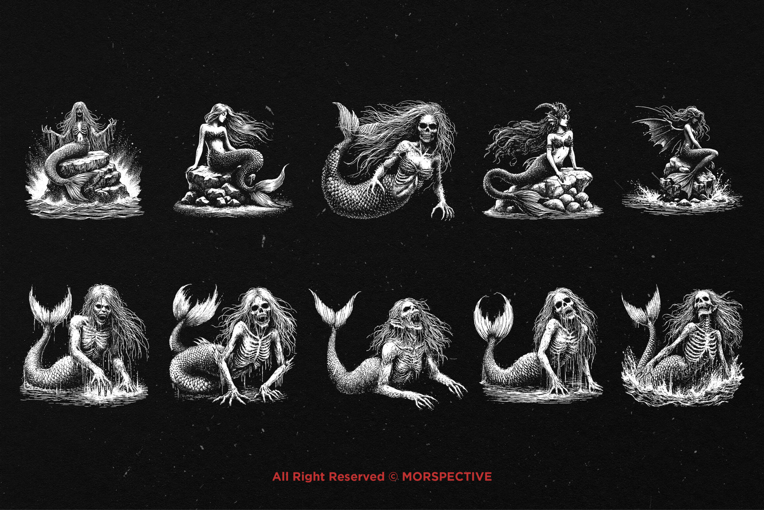 10 Bundle Dark Art Mermaids Fish