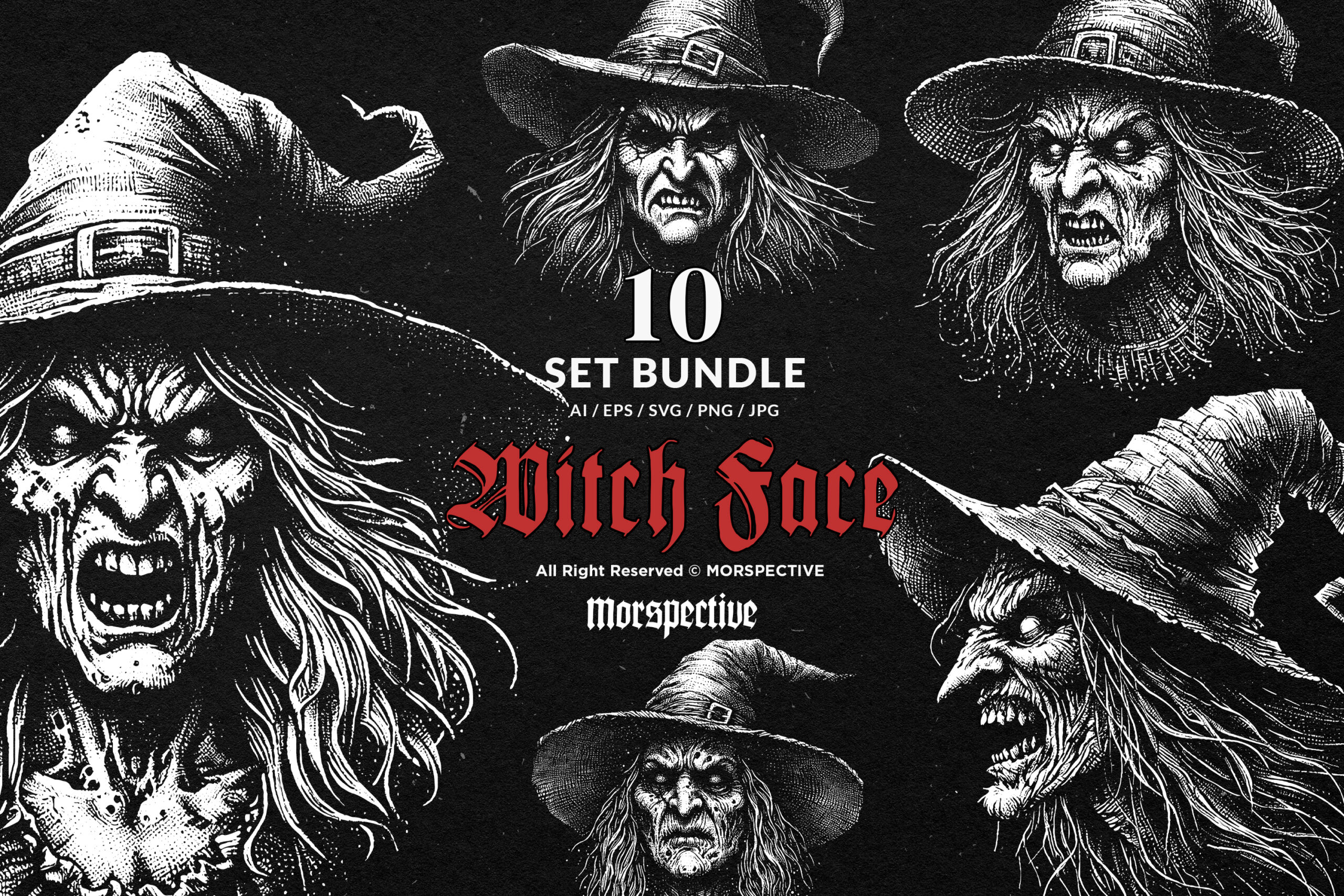 10 Bundle Dark Art Witch Head Women